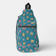 This stylish cute sling bag features a vibrant teal background adorned with a playful pattern of woodland animals (dear, fox, racoon, bear, kola, rabbit) peeking out of windows. The design is reminiscent of a cosy winter scene, with snowflakes gently falling.