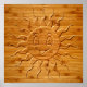 Cute cartoon style drawing carved in wood. All digital printed image. No actual wood or carving used in the making.