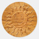Print Of Smiling Sun Face Carved In Wood Classic Round Sticker