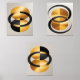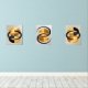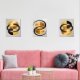 Modern Abstract Triptych Wall Art – Digital Painting of Gold Circles & Black Lines | Minimalist Printable Home Decor | Set of 3 Panels for Living Room or Office
