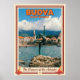 Poster of the coastline of Budva, Montenegro and the statue of the dancer of the Adriatic Sea.
