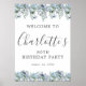 Welcome your guests with this elegant sign. Pretty dusty blue roses, peonies and wildflowers decorate the top and border. A classic and easy-to-read font combination takes only minutes to personalise.