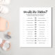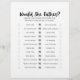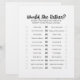 Get the laughs going with this fun “Would She Rather?” baby shower game! Printable 8.5x11 sheet, perfect for group activities and party fun. Non-editable and ready to print.