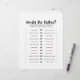 Printable Baby Shower Game: Would She Rather? Custom Letterhead