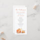 Printable Fall Pumpkins Pumpkins Wedding Program. Available digitally and printed. A minimalist design with pumpkins and a burning candle in the colours of fall, orange, brown and cream with a set script for The Wedding of. The rest of the text on both sides can be easily personalised.