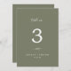 This printable minimal leaf dark green table number is perfect for a boho wedding. The design features a simple greenery leaf silhouette in olive green with minimalist mountain bohemian style. The card prints on the front and back (double-sided). Items are printed exactly as they appear on your screen when you add to cart, so personalise and add each table number that you need to your cart individually.