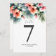 Celebrate your wedding with our enchanting table number table top sign, adorned with exquisite watercolor hibiscus flowers in shades of pink and peach. It's your canvas to personalise! Simply fill in the template with your own names, wedding date, and table numbers. You can choose between beautifully printed cards or opt for our convenient printable table numbers.