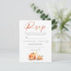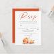 Printable Terracotta Orange Pumpkins Fall Candle QR Code. Available digitally and printed. A row of pumpkins and cosy burning candle are at the bottom in autumn colours and RSVP is in an elegant set script. The rest of the text you can easily personalise. Add your QR code to your reply page on your wedding website on the back by replacing the QR code on the sample to give your guests the alternative to reply online or post back to you.