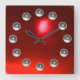 PRINTED 3D RED RUBY AND WHITE GEMSTONES SQUARE WALL CLOCK