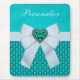 Cool, classy personalised mousepad / mousemat with a beautiful vibrant turquoise aquamarine jewels pattern and a pretty blue sparkle digital ribbon and bow with an elegant silver and aquamarine heart jewel ornament. A stylish and chic fashion gift for women and girls who love a touch of elegant bling! PLEASE NOTE: All products on Zazzle have flat printed images. If you need any assistance customising your product please contact me through my store and I will be happy to help.