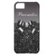 Elegant personalised girly black and white case with a beautiful printed black and silver sequins pattern, a cute printed black and silver bow and ribbon and pretty printed diamond bling jewel. Personalise it with your own name. A trendy, glamourous gift for her - women and girls will love this fashionable black case. Please note: All cases on the Zazzle website have flat printed images - not real jewels or ribbons. AJ GRAPHICS MOST POPULAR PRODUCTS FLASH PANEL
