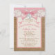 Invite all your friends and family to an open house in honour of your daughter's Confirmation. This rustic and chic rosy pink and ivory floral lace on brown FAUX burlap (printed) vintage typography style Confirmation invitation has a pretty pink bow with a PRINTED FAUX silver engraved charm with a Cross on it, over a scalloped edged floral pattern lace on an ivory and pink background that would be perfect for a modern and trendy religious occasion. There is a faded pink pair od praying hands and two pink peace doves with arched "Confirmation" text in a lined vintage look font. The paper and most text is customisable.If you require any other items in this design style, please email your request to niteowlstudio@gmail.com.