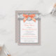 This pretty orange, grey and white floral lace umbrella pattern baby shower invitation has a PRINTED ON orange satin bow with a PRINTED FAUX silver charm with the words "Oh Baby!" on it. All the template text can be customised how you like. If you need any other matching items, please email niteowlstudio@gmail.com.