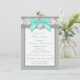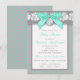 This pretty turquoise, grey and white floral lace umbrella pattern baby shower invitation has a PRINTED ON aqua blue satin bow with a PRINTED FAUX silver charm with the words "Oh Baby!" on it. All the template text can be customised how you like. If you need any other matching items, please email niteowlstudio@gmail.com.