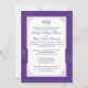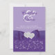 This romantically elegant two-toned purple and white floral wedding invitation has a PRINTED purple ribbon and bow with a pair of PRINTED diamond jewel and FAUX silver glitter (simulated) joined hearts on it, with an ornate corner flourishes on the back. There is also a love quote on the front that says: "This day, I marry my best friend, The one I live for, laugh with, dream with, love". ***PLEASE NOTE there are no raised elements on this invitation. Everything is printed flat. ***PLEASE NOTE that if you change the fonts or size of the fonts, it may alter how your invitation prints. It will print the way you see it on your monitor, so if you have alignment issues, or sizing problems, please contact me for help. I will not see your invitation once you order it, and Zazzle will NOT edit anything (typos, alignment, etc.). If you require assistance or would like any other matching items, please email your request to niteowlstudio@gmail.com. The design is ink on paper, so it will pick up the properties of the paper it is printed on. A matte paper will have NO shine on any part of the invitation. I recommend the pearl shimmer for the printed on elements to have a subtle shimmery look to them.