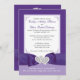 This romantically elegant two-toned purple and white wedding invitation with flourishes in the corners has a PRINTED purple ribbon and bow with a pair of PRINTED diamond jewel and FAUX silver glitter (simulated) joined hearts on it. There is also a love quote on the front that says: "This day, I marry my best friend, The one I live for, laugh with, dream with, love". The back side has a photo template area if you want to have a photo printed there, along with extra wedding details and information. BE SURE to use a high quality/high-resolution photo for best printed results. The photo should be 300dpi at the size you want it printed at. ***PLEASE NOTE there are no raised elements on this invitation. Everything is printed flat. ***PLEASE NOTE that if you change the fonts or size of the fonts, it may alter how your invitation prints. It will print the way you see it on your monitor, so if you have alignment issues, or sizing problems, please contact me for help. I will not see your invitation once you order it, and Zazzle will NOT edit anything (typos, alignment, etc.). If you require assistance or would like any other matching items, please email your request to niteowlstudio@gmail.com. The design is ink on paper, so it will pick up the properties of the paper it is printed on. A matte paper will have NO shine on any part of the invitation. I recommend the pearl shimmer for the printed on elements to have a subtle shimmery look to them.