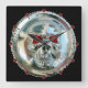 PRINTED CHROME SKULL Red Ruby Gems Square Wall Clock