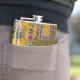 The flask itself is fine. It’s a cheap flask, obviously bought in bulk, however am prepared to overlook that. Given that it is a personalized item, I would have liked to have seen gift boxing instead of the generic packaging. Terrible printing, and/or quality. It’s a cheap, tacky vinyl. It is not cut straight and is also applied in a way that it is overhanging the bottom, causing the glue to catch on items and it will eventually roll and tear, damaging the wrap.