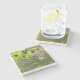 The coasters are gorgeous, a quality feel and heavy weight. They look like a precious archeological find. A rustic stone juxtaposed with a modern floral black and white print. I like the way the print goes slightly imperfect on the cut stone edges giving them a kind-of natural beauty.