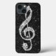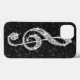 Elegant, glamourous case. Beautiful, dazzling trendy printed image silver and diamonds bling jewels musical note on a chic black sparkly glitter printed image background. A cute, classy, fashionable, stylish, pretty gift for her or any music lover.