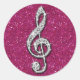 Printed Glitzy Sparkly Diamond Music Note Classic Round Sticker