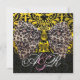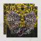 PRINTED LEOPARD FUR BOW GOLD BLACK DAMASK MONOGRAM INVITATION