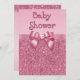 Printed Pink Sequins and Bow Girls Baby Shower Invitation