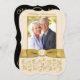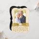 This elegant ivory, black and gold floral with scrolls 50th wedding anniversary photo invitation has a PRINTED gold ribbon and a PRINTED FAUX engraved look ivory and gold medallion on it. It has a template area for you to upload your own digital photo to. You can remove the stylised cursive "Wedding Anniversary" or "50th" text. All the text is customisable, and so are the paper choices. ALSO, if you change fonts or font sizes, your text may not fit properly any more. Zazzle will not edit anything for typos, alignment, or anything else, and I will not see your invitation. Everything will print as it appears on your monitor. If you need help with the invitation, please contact me BEFORE you order it. This invitation is designed to fit the 5x7 size curved SHAPE card. If you change to another size/shape, the design will no longer fit properly, so if you want a different size, please contact me so I can re-design it for you. If you require any other matching items in this design, please email your request to niteowlstudio@gmail.com.