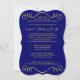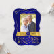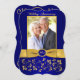 This elegant royal blue and gold floral with scrolls 50th wedding anniversary photo invitation has a PRINTED gold ribbon and a PRINTED FAUX engraved look blue and gold medallion on it. It has a template area for you to upload your own digital photo to. You can remove the stylised cursive "Wedding Anniversary" or "50th" text. All the text is customisable, and so are the paper choices. ****PLEASE NOTE that if you change to gold metallic paper that it is a very dark brassy gold and it will alter the colours of the design (turn the photo gold etc.), so I do NOT suggest using that paper. Felt paper will also alter the colour of your photo slightly. ALSO, if you change fonts or font sizes, your text may not fit properly any more. Zazzle will not edit anything for typos, alignment, or anything else, and I will not see your invitation. Everything will print as it appears on your monitor. If you need help with the invitation, please contact me BEFORE you order it. This invitation is designed to fit the 5x7 size curved SHAPE card. If you change to another size/shape, the design will no longer fit properly, so if you want a different size, please contact me so I can re-design it for you. If you require any other matching items in this design, please email your request to niteowlstudio@gmail.com.
