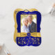 This elegant royal blue and gold floral with scrolls 50th wedding anniversary photo invitation has a PRINTED gold ribbon and a PRINTED FAUX engraved look blue and gold medallion on it. It has a template area for you to upload your own digital photo to. You can remove the stylised cursive "Wedding Anniversary" or "50th" text. All the text is customisable, and so are the paper choices. ****PLEASE NOTE that if you change to gold metallic paper that it is a very dark brassy gold and it will alter the colours of the design (turn the photo gold etc.), so I do NOT suggest using that paper. Felt paper will also alter the colour of your photo slightly. ALSO, if you change fonts or font sizes, your text may not fit properly any more. Zazzle will not edit anything for typos, alignment, or anything else, and I will not see your invitation. Everything will print as it appears on your monitor. If you need help with the invitation, please contact me BEFORE you order it. This invitation is designed to fit the 5x7 size curved SHAPE card. If you change to another size/shape, the design will no longer fit properly, so if you want a different size, please contact me so I can re-design it for you. If you require any other matching items in this design, please email your request to niteowlstudio@gmail.com.