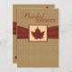 This rustic tan, brown, and orange burlap sack inspired bridal shower invitation has a rust coloured PRINTED ribbon on it along with an image of a framed dried maple leaf on a faux burlap background. It would be perfect for a fall or autumn shower or party. If you need any other matching items, please email niteowlstudio@gmail.com.
