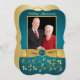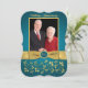 This elegant teal blue green and gold floral with scrolls Sixty-fifth wedding anniversary photo invitation has a PRINTED gold ribbon and bow with a PRINTED FAUX engraved look teal and gold medallion on it. It has a template area for you to upload your own digital photo to. You can remove the stylised cursive "Wedding Anniversary" or "60th" text. All the text is customisable, and so are the paper choices. ****PLEASE NOTE that the gold paper is a very dark brassy gold and it will alter the colours of the design (turn the photo gold etc.), so I do NOT suggest using that paper. Felt paper will also alter the colour of your photo slightly. This invitation is designed to fit the 5x7 size curved SHAPE card. If you change to another size/shape, the design will no longer fit properly, so if you want a different size, please contact me so I can re-design it for you. ALSO, if you change fonts or font sizes, your text may not fit properly any more. Zazzle will not edit anything for typos, alignment, or anything else, and I will not see your invitation. Everything will print as it appears on your monitor. If you need help with the invitation, please contact me BEFORE you order it. This invitation is designed to fit the 5x7 size card. If you change to another size, the design will no longer fit properly, so if you want a different size, please contact me so I can re-design it for you. If you require any other matching items in this design, please email your request to niteowlstudio@gmail.com.