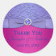 This 1.5" round shaped fuchsia pink and periwinkle purple FAUX embossed floral wedding favour thank you sticker and/or envelope seal has a lavender coloured PRINTED ribbon and a PRINTED tanzanite and diamonds buckle on it that matches the wedding invitation shown below. There are other shapes and sizes you can choose. ****PLEASE be careful if you do change the sticker shape, as parts of the design and/or text may get cut-off as the safe boundary for text is quite large. If you change fonts, they also may extend into the safe boundary, so its best to contact me to make another shape for you. If you need assistance, email niteowlstudio@gmail.com.