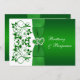 This romantic emerald green and white floral wedding invitation has a PRINTED satin look ribbon and bow with a pair of PRINTED diamond jewels and FAUX glitter joined hearts on it that would be perfect for a St. Patrick's Day wedding theme. ****PLEASE NOTE there is no embossing or raised images on this card. ALSO, Zazzle will NOT edit anything for typos or alignment or spacing, so please make sure your text is exactly how you want it. I will not see your invitation, so if you need help with the customisation of my design, please email me BEFORE you order. Everything is printed flat. It could also be used for several other special events, such as an anniversary or engagement. The text and paper choices are fully customisable, but I do NOT suggest changing the paper to the silver or gold metallic, as they are very dark and will alter the readability and look of the design. Other papers may also alter the colours. If you require any matching items, please email your request to niteowlstudio@gmail.com.