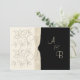 PRINTED RIBBON Ivory Black Monogram Wedding Invite