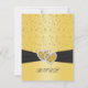 This black and gold floral RSVP card has a PRINTED black ribbon with a pair of PRINTED FAUX gold glitter and diamond jewels joined hearts on it that matches the 50th wedding anniversary invitation shown below. If you require any other matching items in this design, please email your request to niteowlstudio@gmail.com.