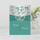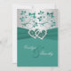 PRINTED RIBBON Teal Silver Joined Hearts Invite