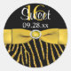 This 1.5" round golden yellow, black, and white FAUX glitter (PRINTED) zebra print striped sweet sixteen birthday party sticker or envelope seal with a PRINTED dark yellow satin ribbon and a PRINTED diamond and jewel brooch on it that matches the sweet 16th birthday party invitation shown below. Customise with your own text. Other shapes and sizes are also available. ***USE caution if you choose a different shape, as some text may get cut-off during printing. Everything will print as it appears on your monitor, and there is a large safety zone around the edge of the stickers, so it would probably be best if you contact me at the email address below if you prefer an alternate shape or need to add additional text. If you need any assistance, please email niteowlstudio@gmail.com for help.