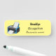 This badge looks professional and it's in keeping with my branding. The magnetic attachment is strong and stays in place all day. The quality of the materials and the colors were exactly as pictured. I couldn't be happier! The printing is clear and easy to read