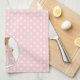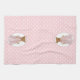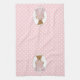 16” x 24” 100% twill cotton kitchen towel with an image, on both ends, of Priscilla, a brown cuddly teddy bear dressed in a beautiful pink and gold ruffled gown, in a white oval with a pink border on a background of white polka dots on pink. Customise for a great baby shower gift. See matching cloth napkin, paper cocktail napkin, cloth placemat, paper placemat and coasters. See the entire Kids' Corner Kitchen Towel collection in the FOOD/BEV | Linens section.