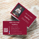 A burgundy coloured background. Personalise and add your photo, title, business name/name and text, contact information on front. White text.