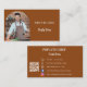 A chocolate brown coloured background. Personalise and add your title, business name/name and text on front. White text. An arch shaped photo frame.