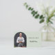 A sage green coloured background. Personalise and add your title, business name/name and text on front. Black text. An arch shaped photo frame.