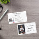 A classic white background. Personalise and add your photo, title, business name/name and text, contact information on front. Black text.