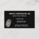 Business cards for Private investigators, security, or law enforcement. Business cards have a white fingerprint on a black background. Customise with your business details using the easy template.