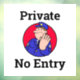 Window Cling. Private No Entry Window Sign with White Background. Warning sign for application to a glass window.