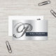 This elegant professional porivate nurse business card features an elegant silver texture background. Your monogram letter appears in a big bold script letter in a subtle dark grey hue. Your name and title appear in a trim text panel that extends from the lower right side of the card towards the middle. Perfect for professional, management, services, personal services, private services, public services, trade skills, special skills themes.