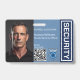 Professional ID badge design for private security personnel. Includes photo, name, job title, ID number, QR code, expiration date, and security badge logo. Customisable with your company name, logo, and contact details—perfect for guards, officers, and patrol staff.