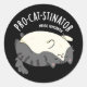 Pro-cat-stinator Funny Fat Cat Pun Dark BG Classic Round Sticker