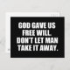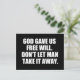 Pro Choice Quote Fight Alabama Abortion Law. God Gave Us Free Will. Don't Let Man Take It Away. Vote for prochoice senators and congressman who will uphold Roe V. Wade and fight for women's access to safe healthcare options. Stand up for women's clinics and abortion rights to choose with this pro choice gift.